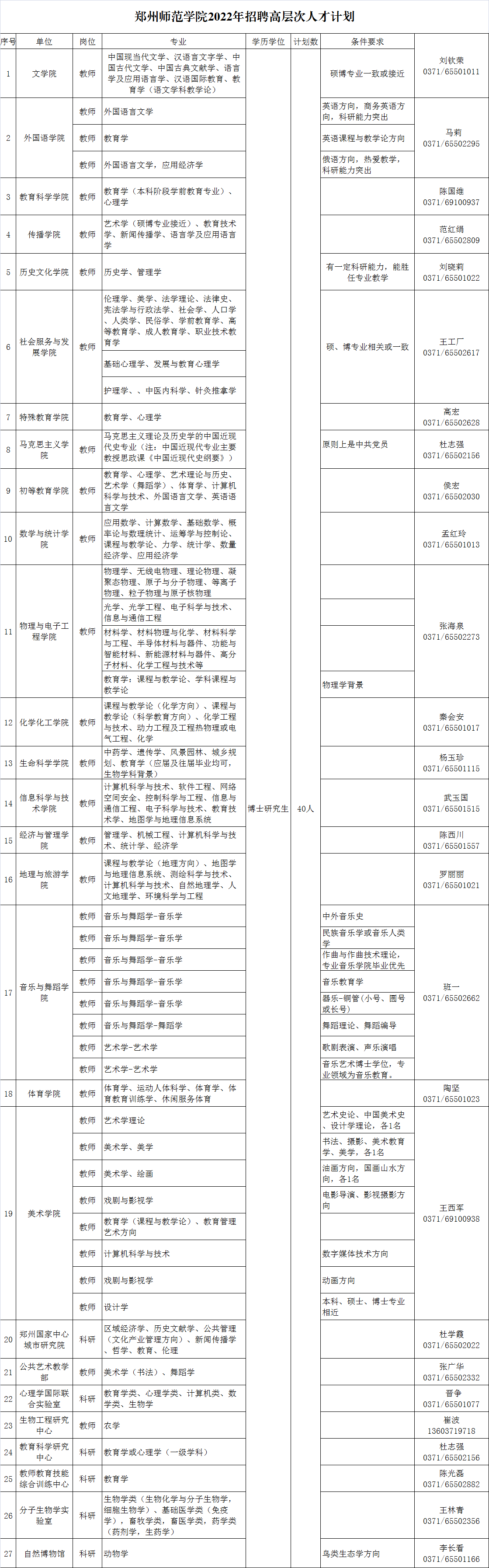 2022年计划招聘具体专业要求见《郑州师范学院2022年招聘高层次人才计划》。