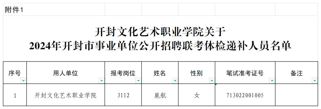 1.开封文化艺术职业学院关于2024年开封市事业单位公开招聘联考体检递补人员名单