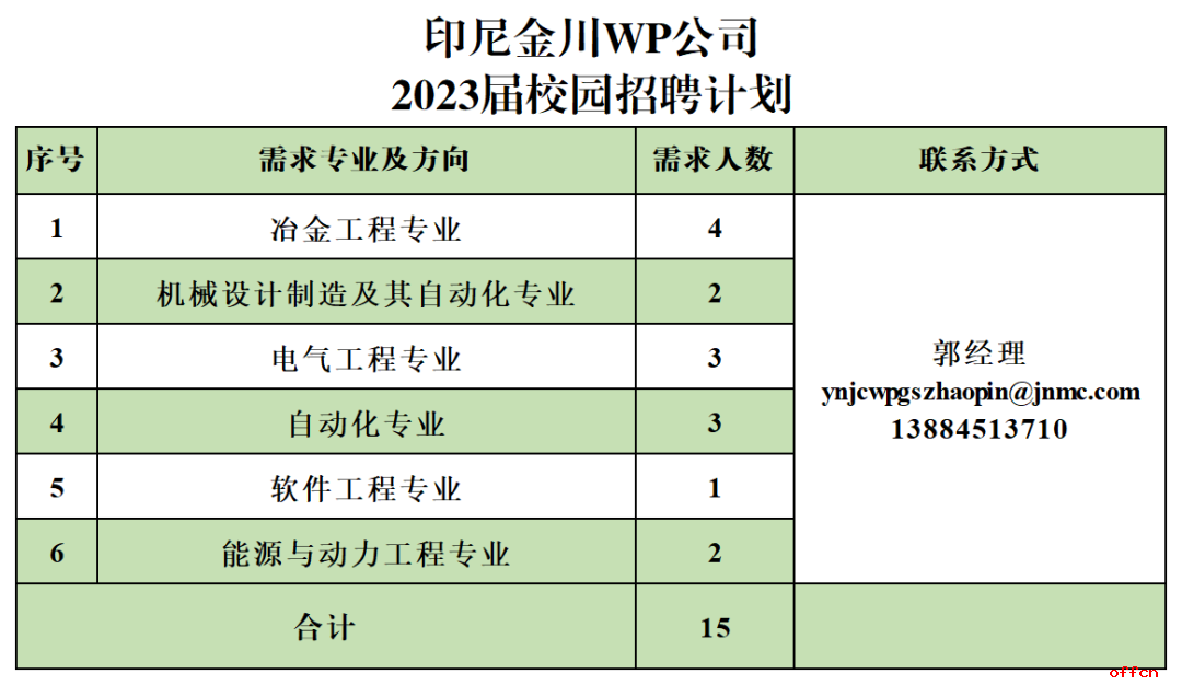 原标题:金川海外丨印尼金川WP公司2023届校园招聘简章