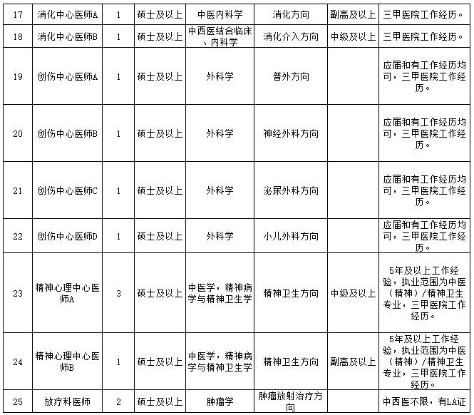 为了推进医院新院区建设,根据学科建设需求,现面向全国招聘以下工作人员,欢迎有志才学前来应聘。具体事项公告如下。