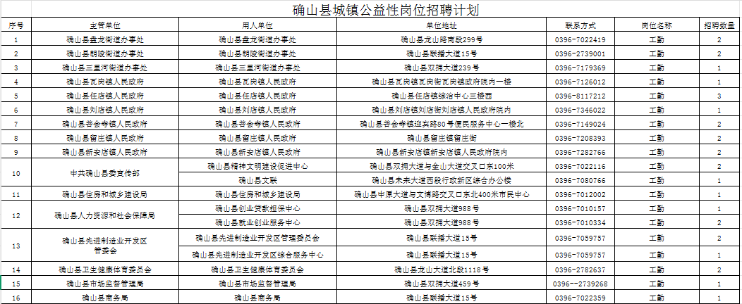 附件:1、确山县镇、街道基层公共就业服务机构地址和联系方式