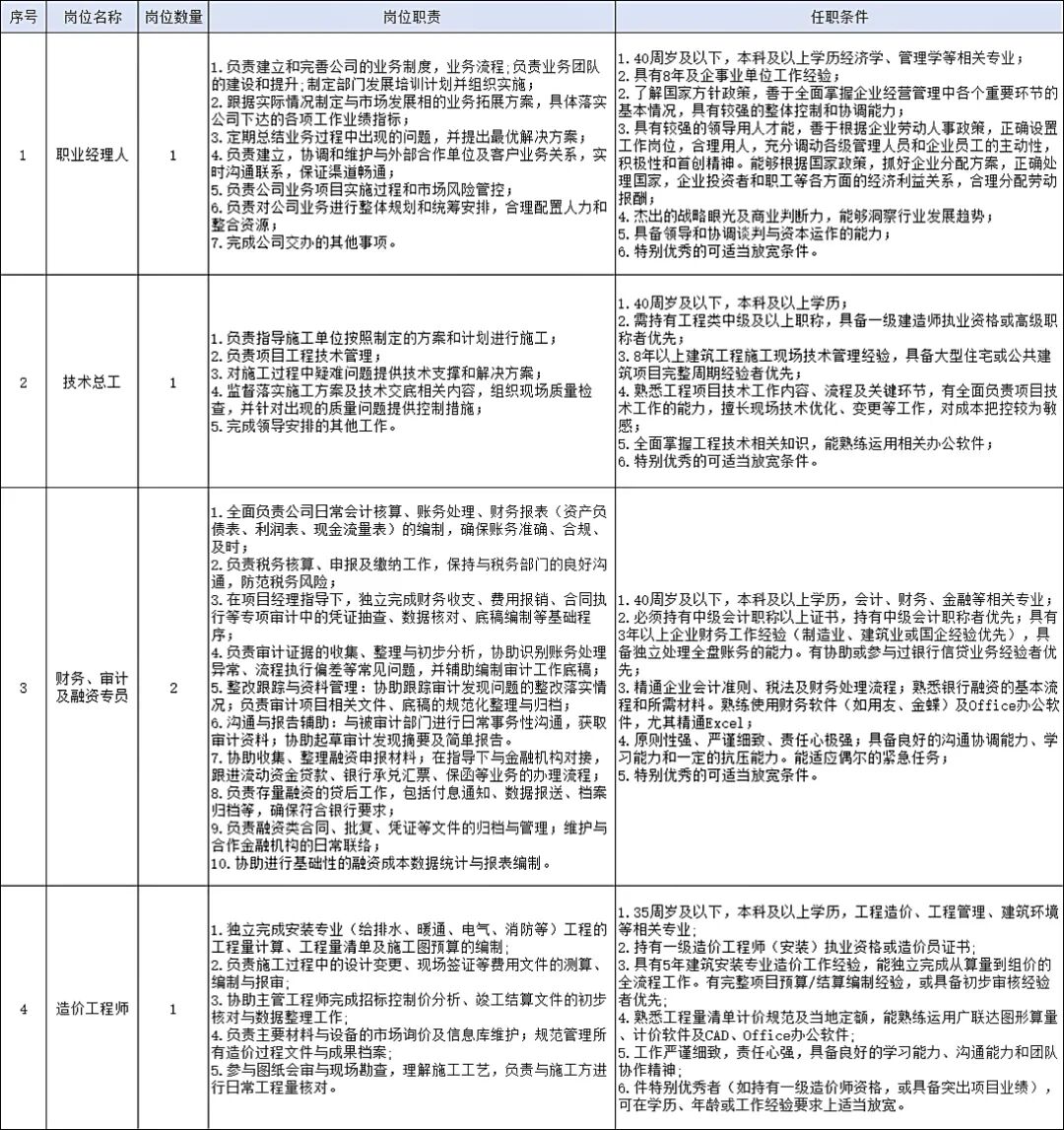 为贯彻落实公司人才强企战略,优化人才队伍结构,打造高素质专业化管理团队,现面向社会公开招聘专业人才。现将有关事项公告如下: