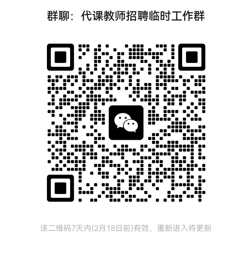(2)报名时间:2月12日—21日(发送简历即为网上报名)。报名者扫二维码进入临时建立的招聘群。