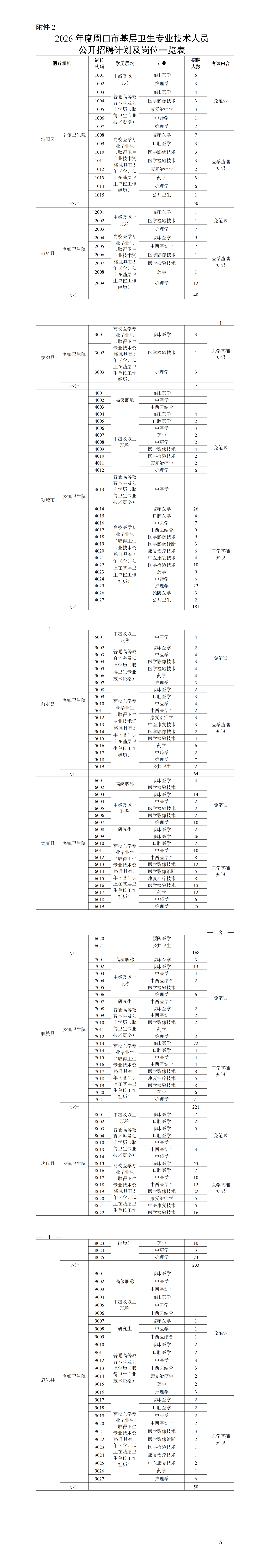 1.2026年度周口市基层卫生专业技术人员公开招聘计划及岗位一览表