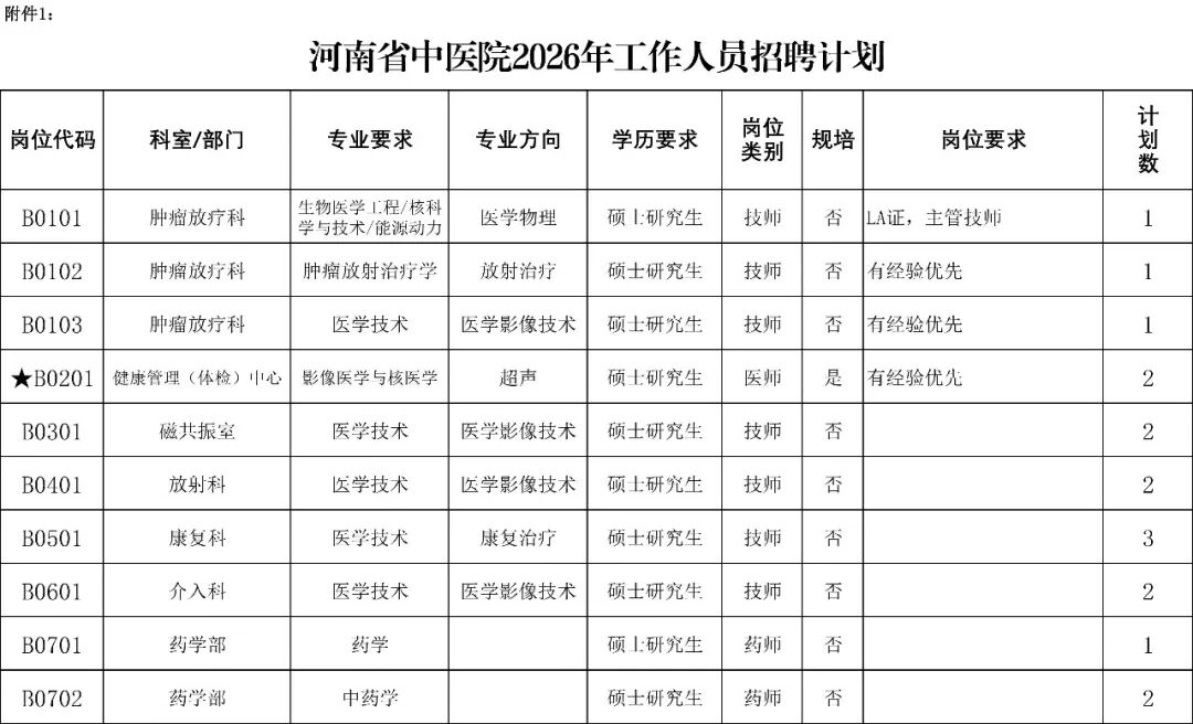 附件:1.河南省中医院2026年工作人员招聘计划