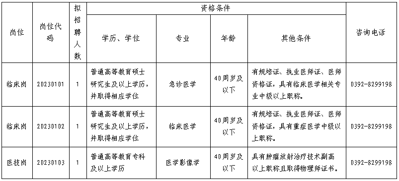 3.身体健康,符合岗位要求的学历、学位、执业资格、规培、职称、年龄、工作经历等条件要求。